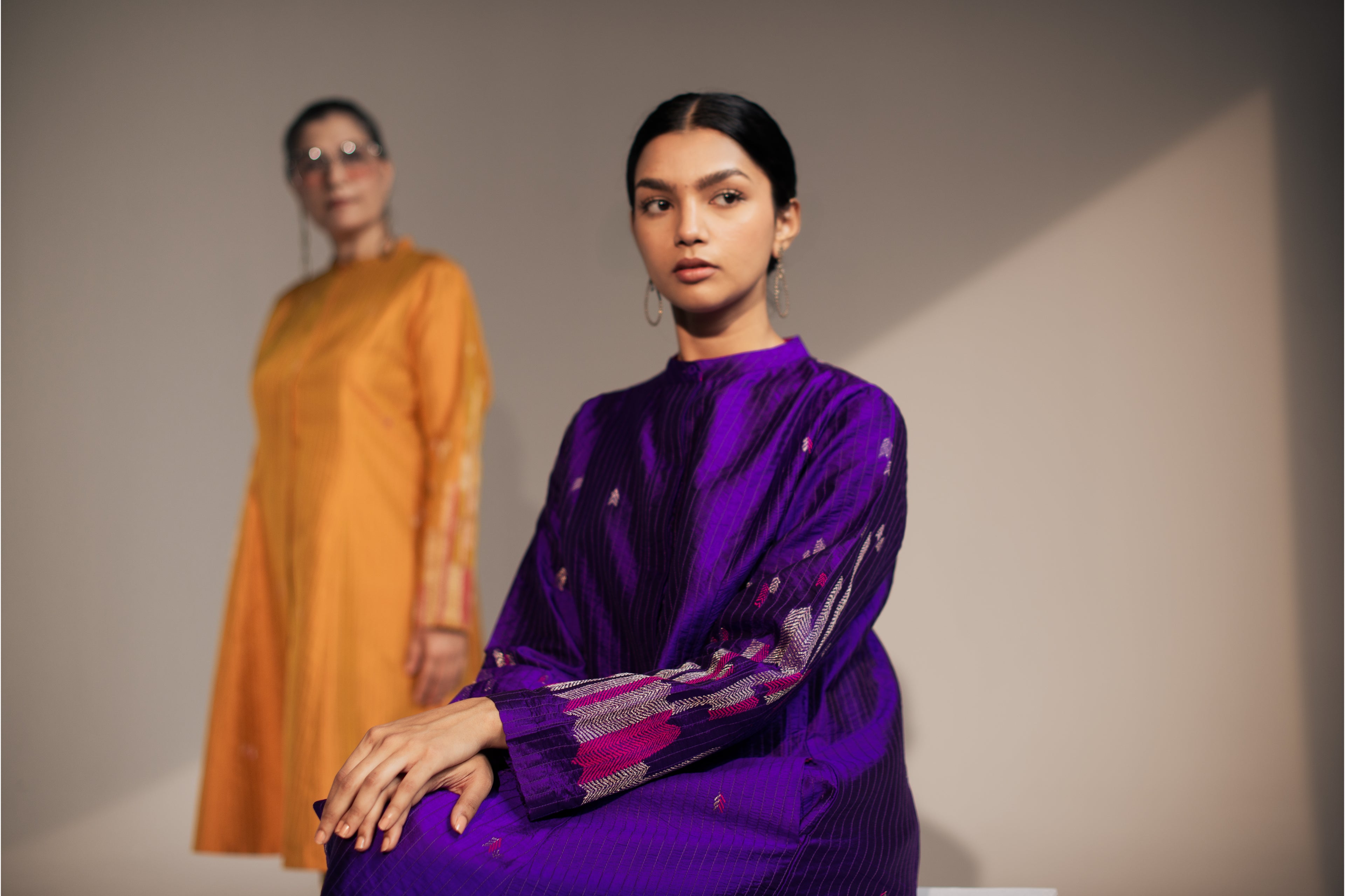 • Hand Embroidered Silk Blouse with Stitch Texture – Purple Hand Embroidered Silk Blouse with Stitch Texture – Purple