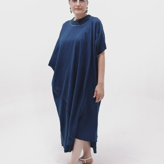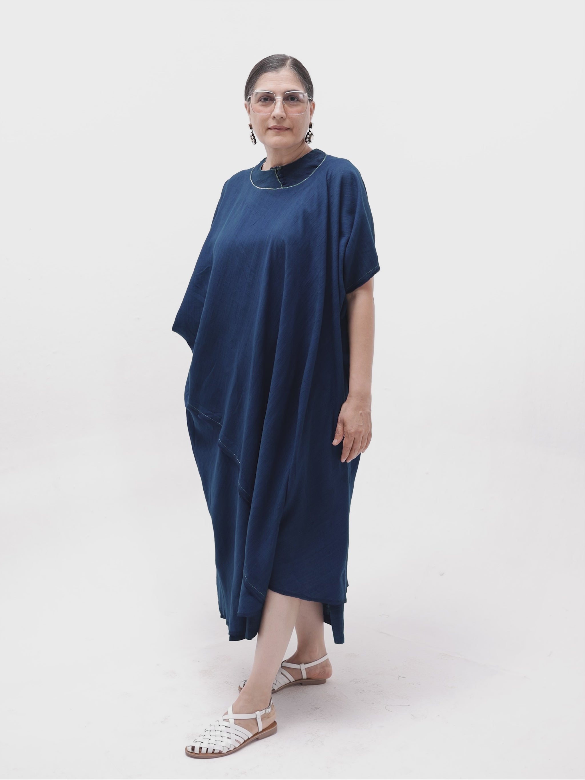 Hand Embroidered Gicha Silk Long Tunic – Indigo