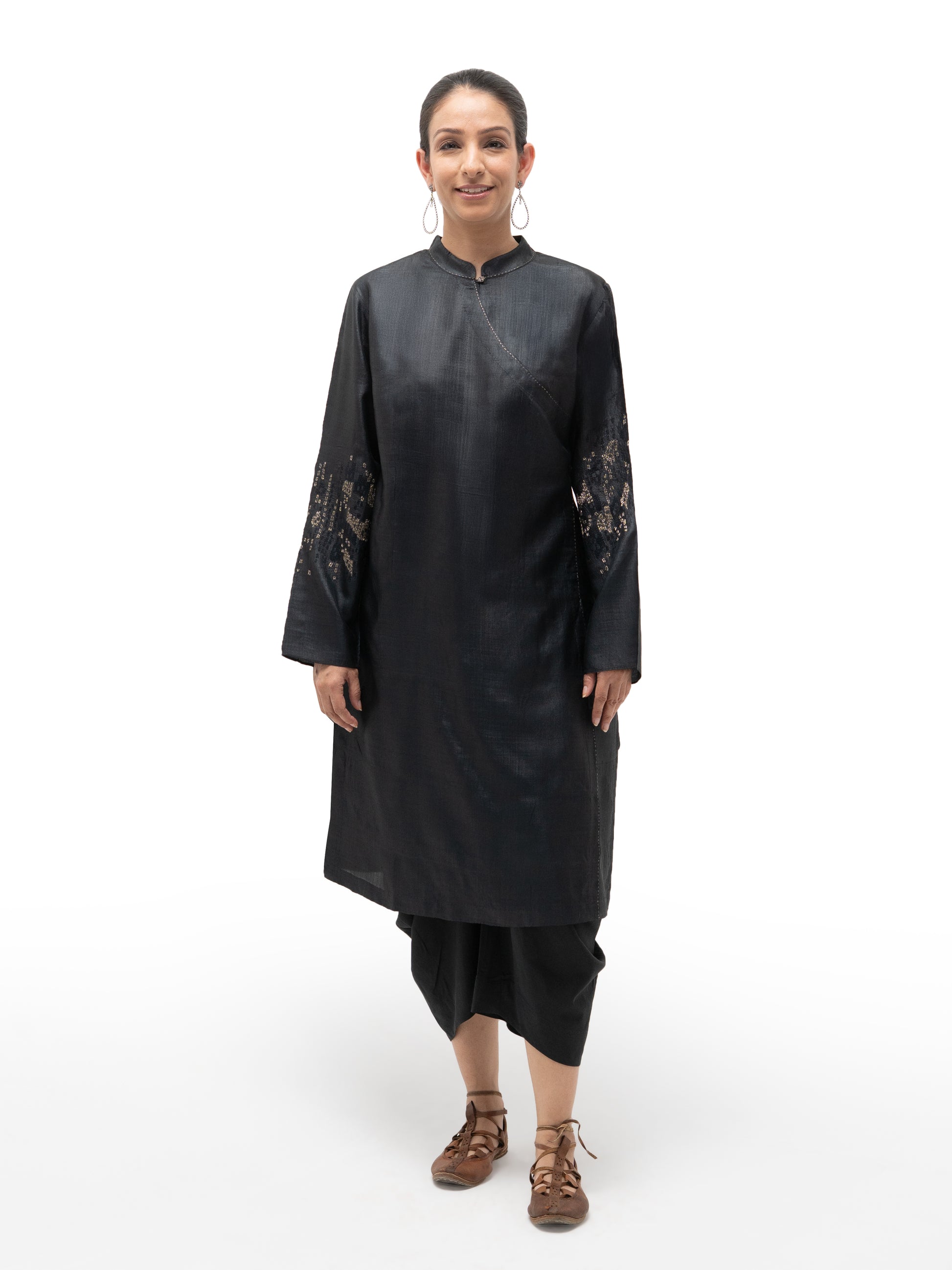 Hand Embroidered Overlap Silk Tunic with Slip