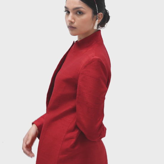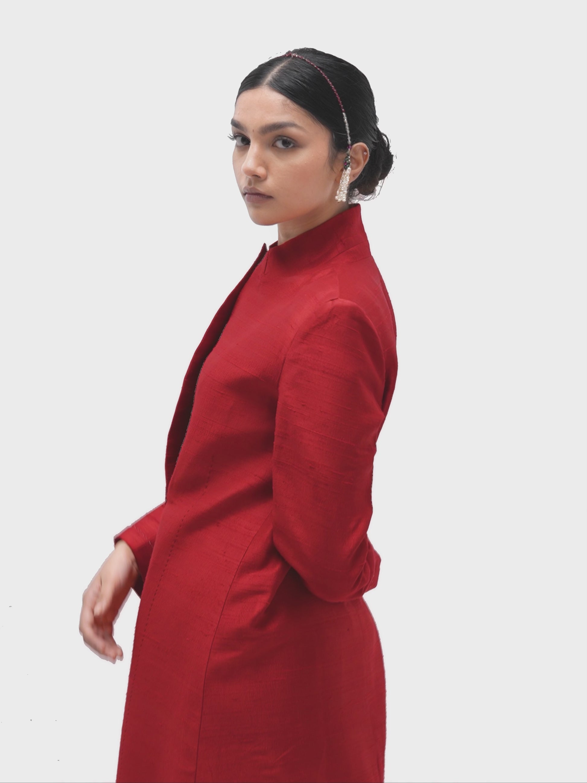 Silk Long Overlap Structured Jacket with Pants (Set)